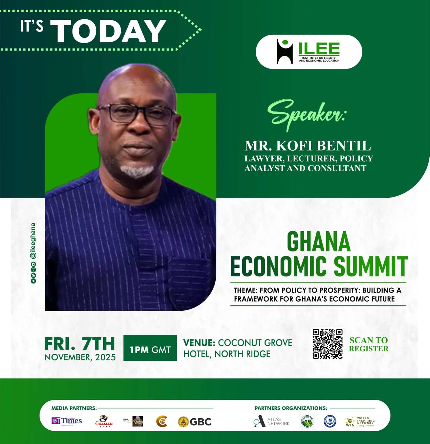 The Institute for Liberty and Economic Education (ILEE), a non-partisan policy think tank, is hosting its flagship annual event, the 2025 Ghana Economic Summit, today, Friday, November 7, 2025, in Accra.
