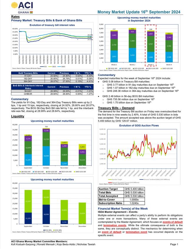 Below is Ghana’s money market update for the week beginning September 16, 2024.