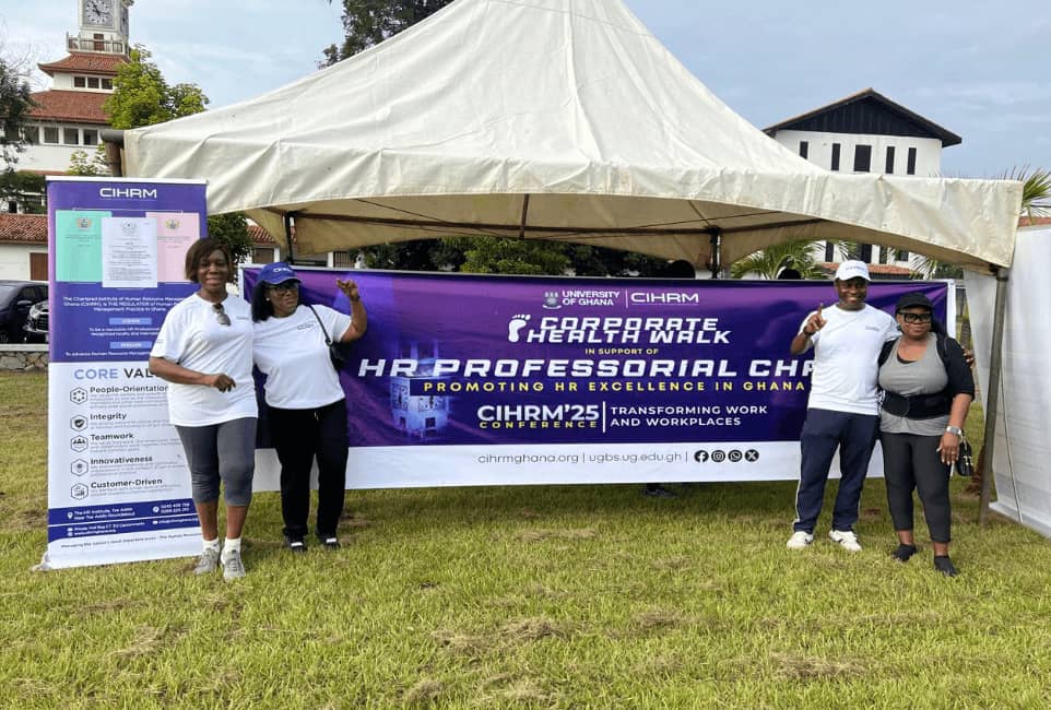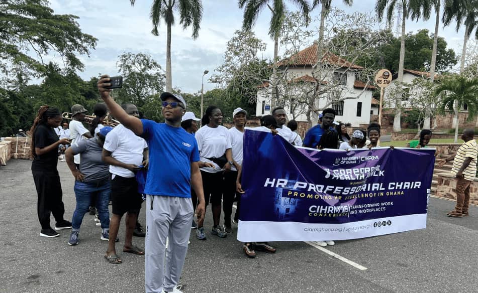 The Chartered Institute of Human Resource Management (CIHRM), Ghana, in partnership with the University of Ghana Business School (UGBS), organized a health walk over the weekend to raise awareness and mobilize support for the newly launched Human Resource Professorial Chair.