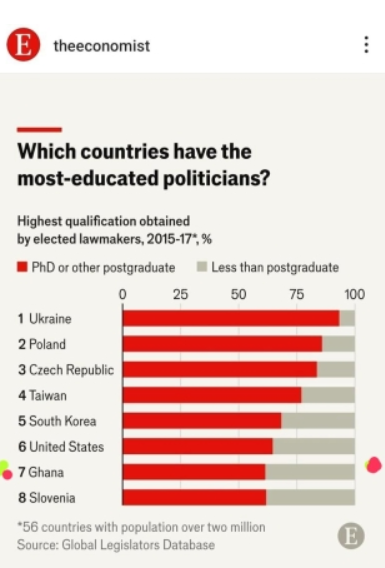 Ghana ranks seventh in a list of countries with the most educated politicians. An article that explores which countries have the most educated politicians has indicated.