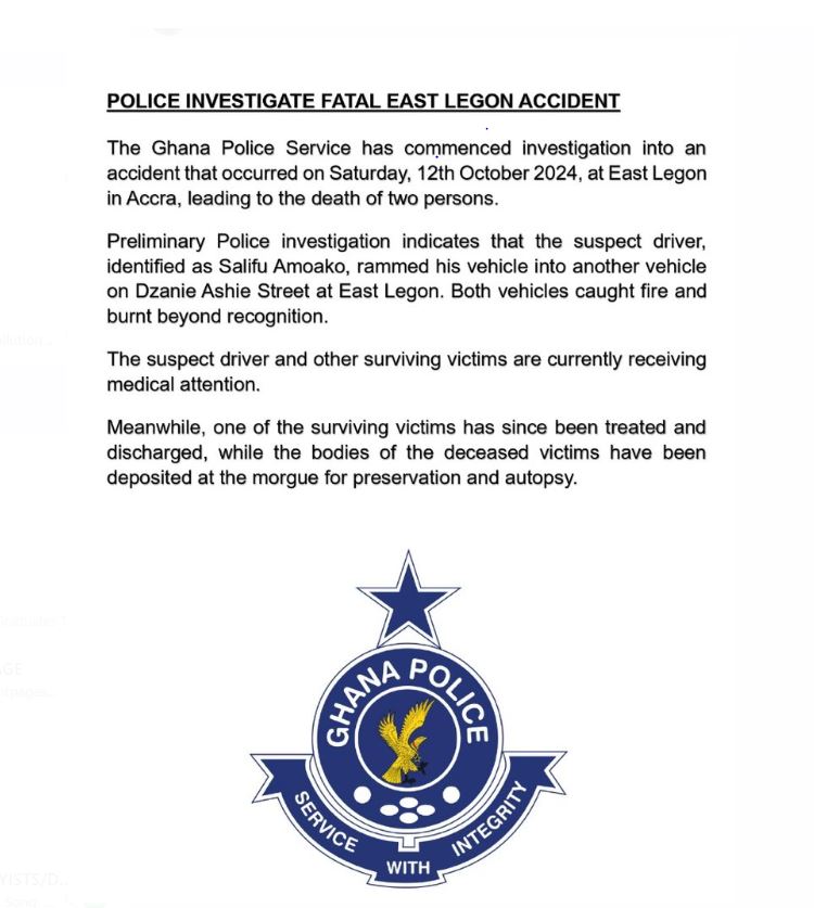 Following the accident, the Ghana Police Service has issued a statement confirming that investigations are underway.