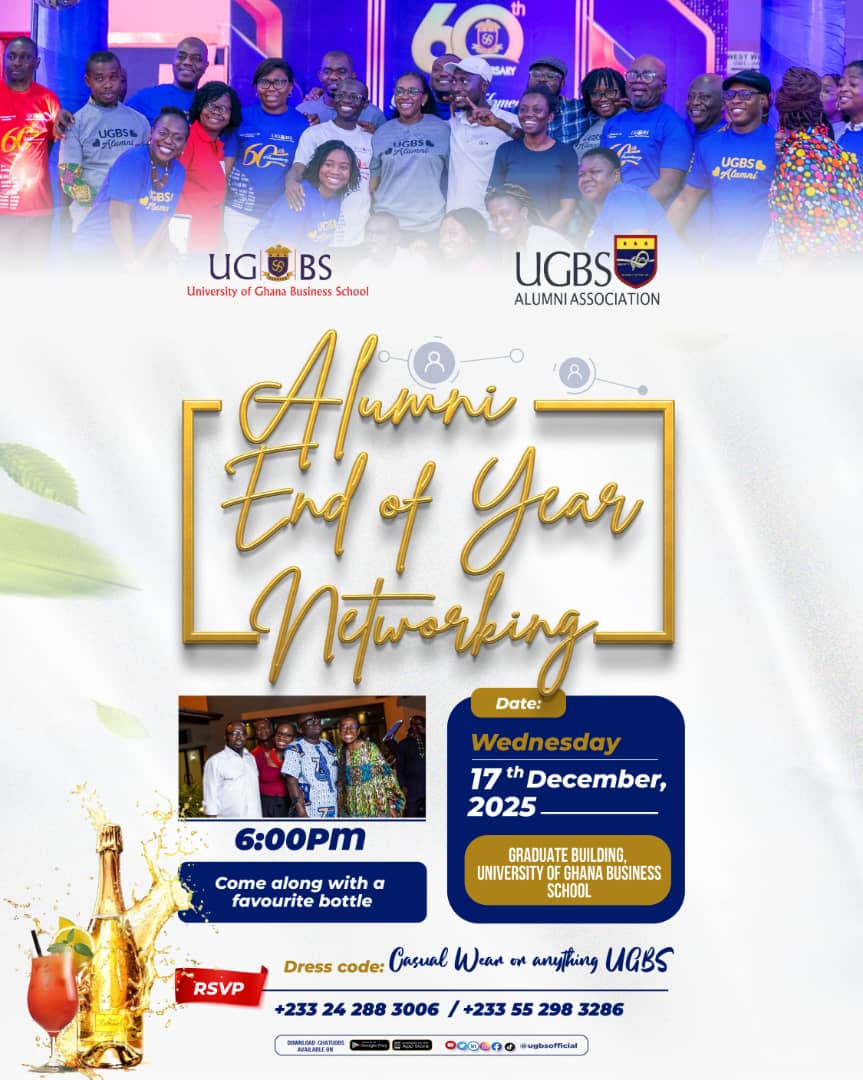 The Alumni Association of the University of Ghana Business School (UGBS) has announced plans to host an End-of-Year Alumni Networking event aimed at strengthening professional ties and fostering engagement among past and present members of the school’s community.