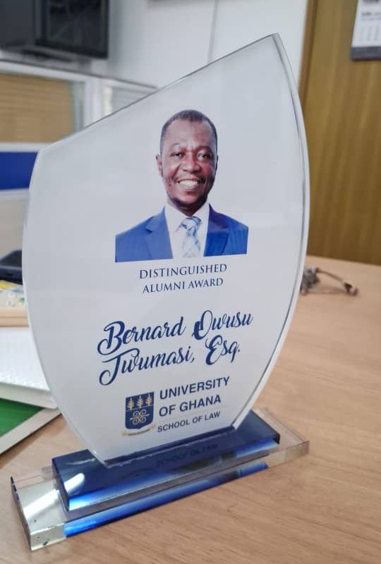The University of Ghana School of Law (UGSoL) has honoured distinguished alumnus Mr. Bernard Owusu-Twumasi with the Legend Award for November. The recognition ceremony took place on Wednesday, December 4, 2024, at Shiashie, Accra, in celebration of his remarkable contributions to the nation and his entrepreneurial achievements.