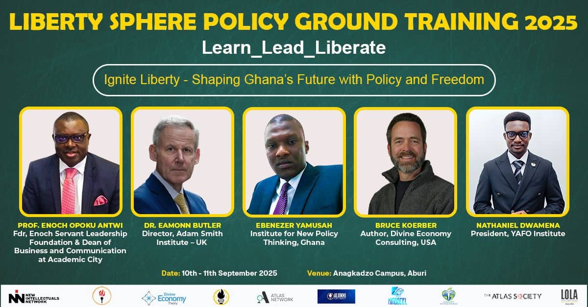 This September, the hills of Aburi will come alive with ideas, energy, and vision as the YAFO Institute hosts Liberty Sphere Policy Ground Training 2025 – a gathering designed to shape bold individual change makers, students, journalists, activists, and entrepreneurs who believe in the power of liberty to transform society. The theme for this year’s election is dubbed, “Ignite Liberty: Shaping Ghana’s Future with Policy and Freedom”.